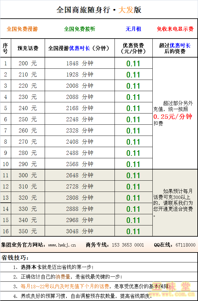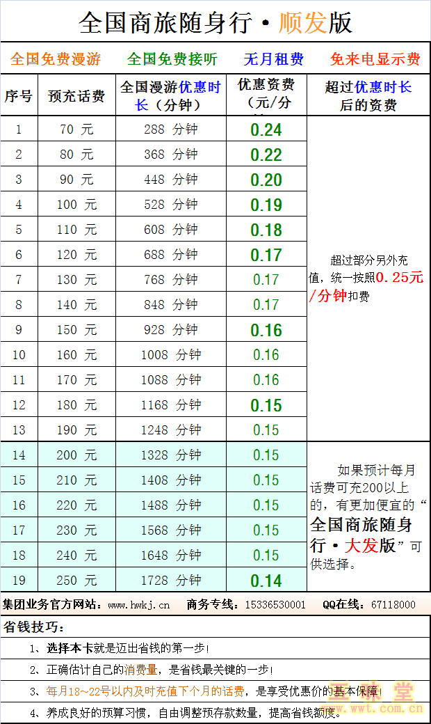 7 P/ H2 s9 l/ i 商旅随身行卡浙江集团客户统一办理后每张价值380元(内含50元话费)。凡在此跟帖订货2张以上者享受单位团购价6折的优惠(每张266元);跟帖预定10张以上者享受集团内部员工价(5折,190元/张)。
