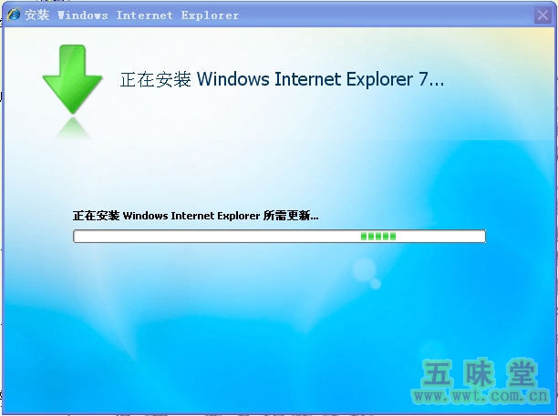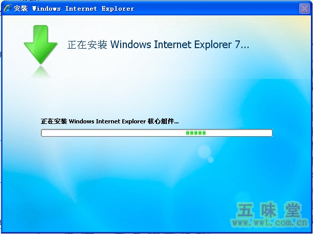 出现“正在安装 Windows Internet Explorer 核心组件”时,表示安装进入关键部分了: