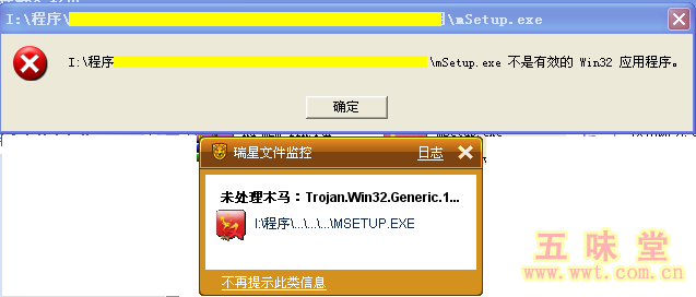 双击mSetup.exe 开始安装。这时,如果没有关闭杀毒软件,是无法安装程序的: